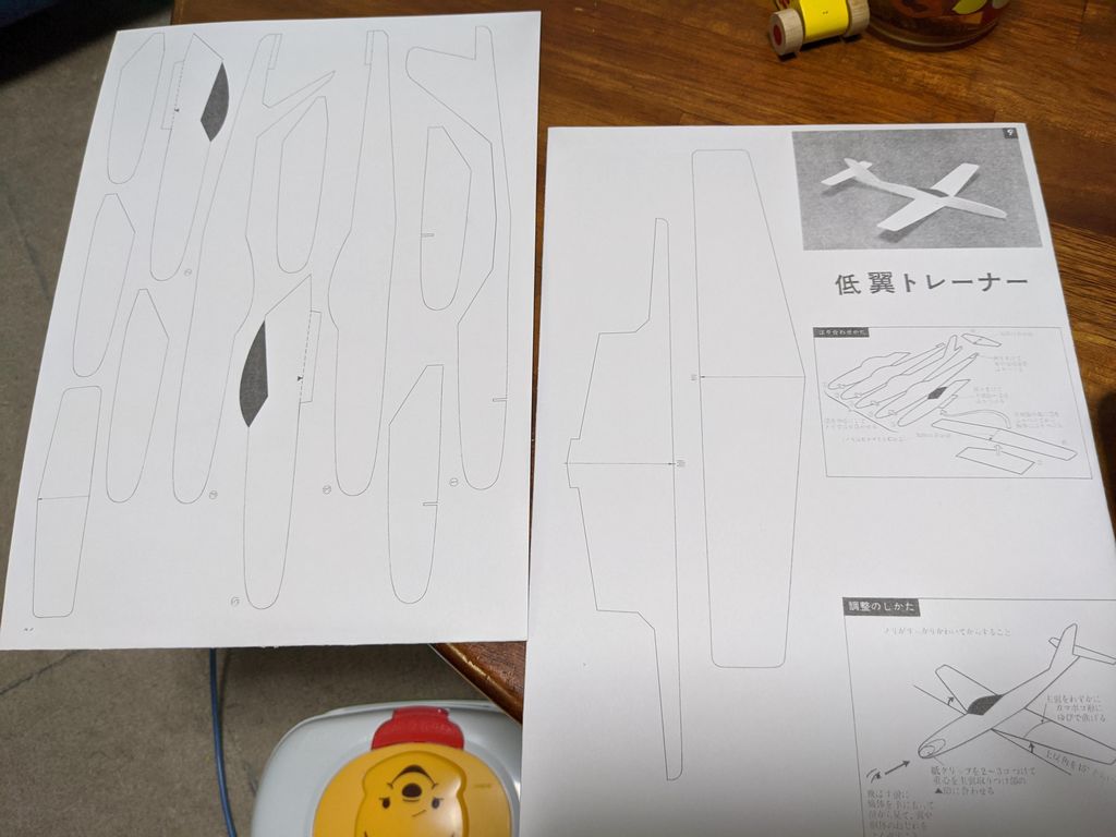 この情報によると、この“低翼トレーナー”は、「子供の科学」で切り抜き型紙第2弾として登場した機体だったようだ。登場したのは1967年10月号。そりゃ古い訳だ。53年も前の型紙であれば納得だ。“低翼トレーナー”というタイトルの印字さえ、なんだか今ではありえない印刷のいい加減さというか、荒っぽさが残っていた。