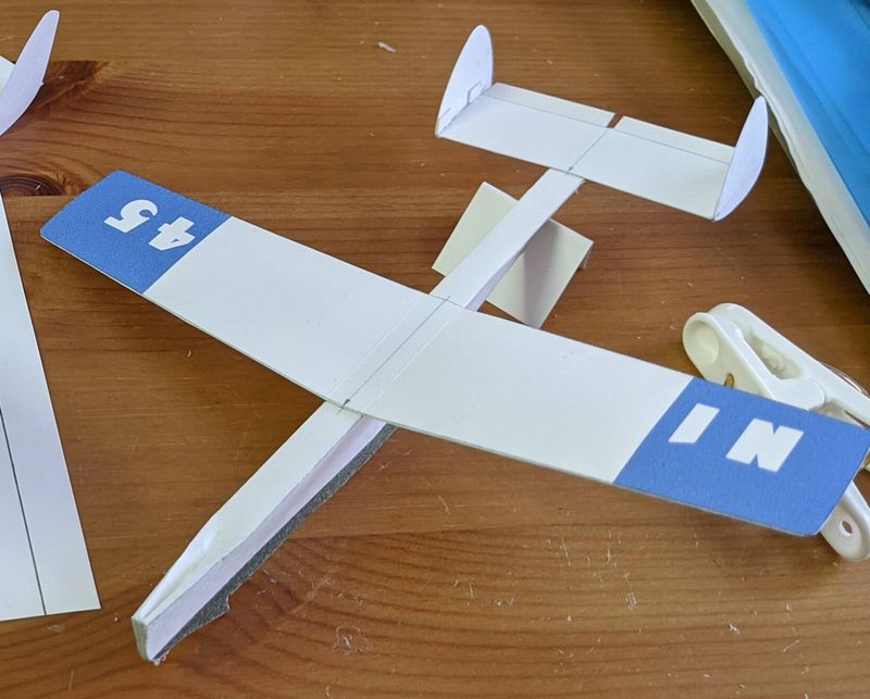無改造の場合、投げ上げにくい低翼機であるがゆえ、うまく作ったとしても精々10~15秒程度の滑空に留まるであろう。カタパルトフックをつけたとしても、この機体は尾翼付近の胴体強度が高速飛行に耐えるように出来ておらず、強力なゴム発進をさせてもグルリとおかしな軌道を描いて回ることが多い。それでもカタパルト発進により高い高度まで打ち上げることが可能ではあるが、競技用機を空高く上昇させたときの、胸のすくような高度への上昇はない。胴体を頑丈に作り、カタパルトによる強力な上昇に耐えることの重要性を思い知ることになる。素直な飛行特性で誰でも親しみやすい本機だが、揚力を産むことは期待できない小ささの水平尾翼、それに対しての主翼取付角、その2点はいじらないと滞空性能の向上は難しいだろうと思う。あまり凝った工作にすると“低翼トレーナー”らしさが失われる気がしないでもないが、本機で現代の紙飛行機と同等の性能を追求するんであれば、胴体の補強、そして主翼取付角の調整と水平尾翼面積の増大が不可欠となる。